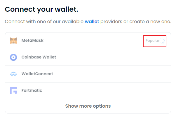 저는 MetaMask 지갑으로 연결했고, kaikas 같은 화면에 보이지 않는 지갑을 갖고 계시다면, Show more options를 클릭해 선택할 수 있습니다.