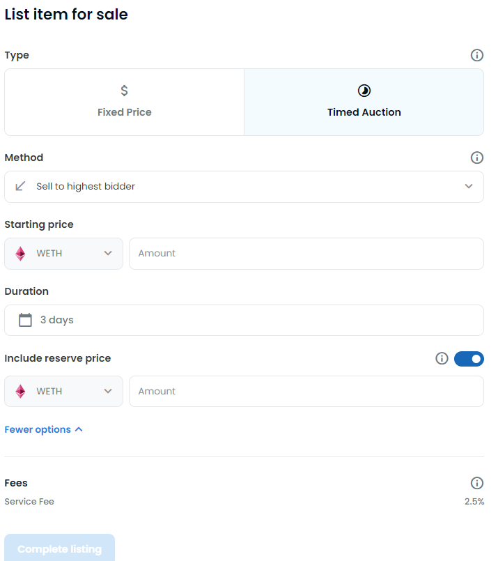 이 때 More options ▼ 를 누르면 위의 이미지처럼 Include reserve price 옵션을 선택할 수 있고,