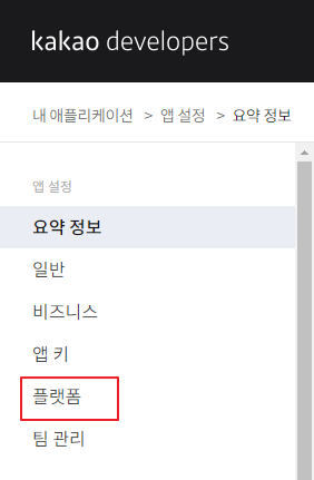 ⓐ 애플리케이션에 들어간 후, 왼쪽 카테고리에서 플랫폼을 선택한다.