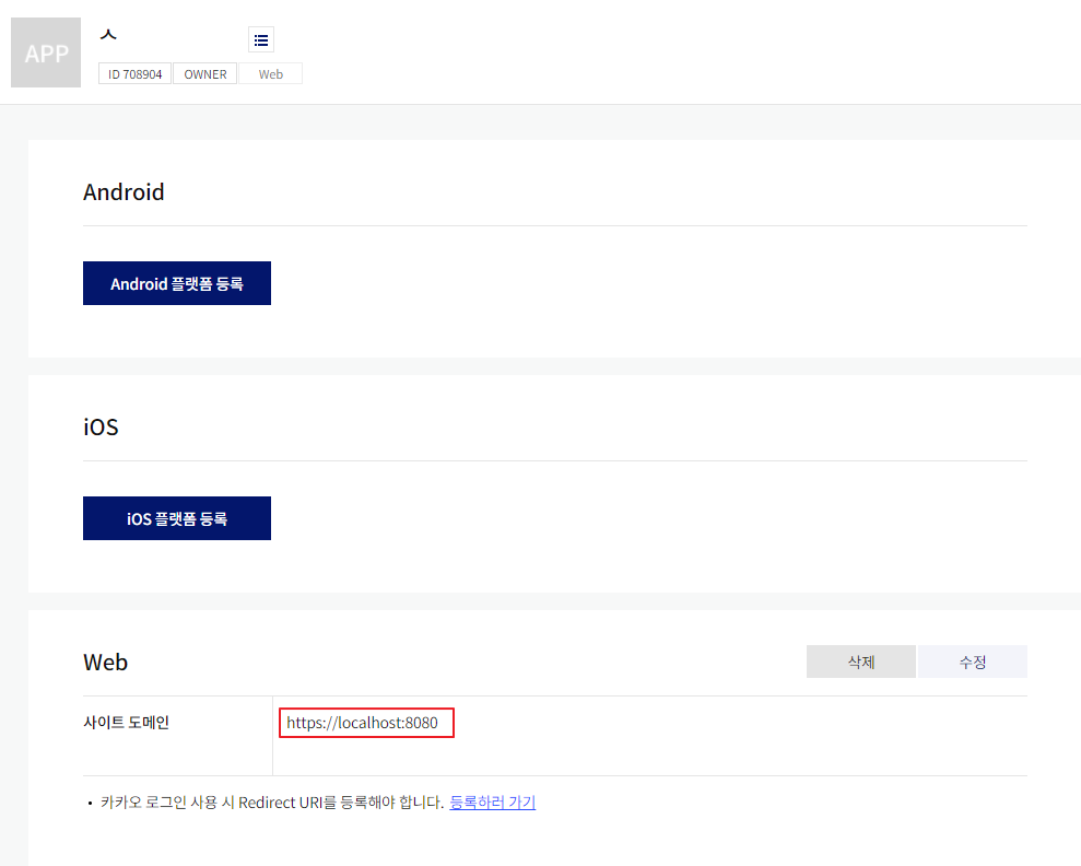 바로, API를 사용할 곳을 알려주는 '플랫폼 등록'이다.