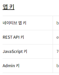 ⑤ 저장 후, 해당 앱을 클릭해서 들어가보면 앱 키가 나온다.