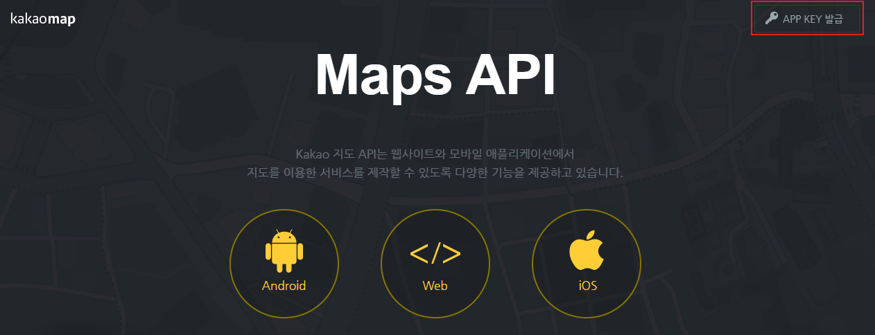 그렇기 때문에, 카카오맵 API를 사용하기 위해서는 API KEY를 발급 받아야하는데 발급 방법은 매우 간단하다.