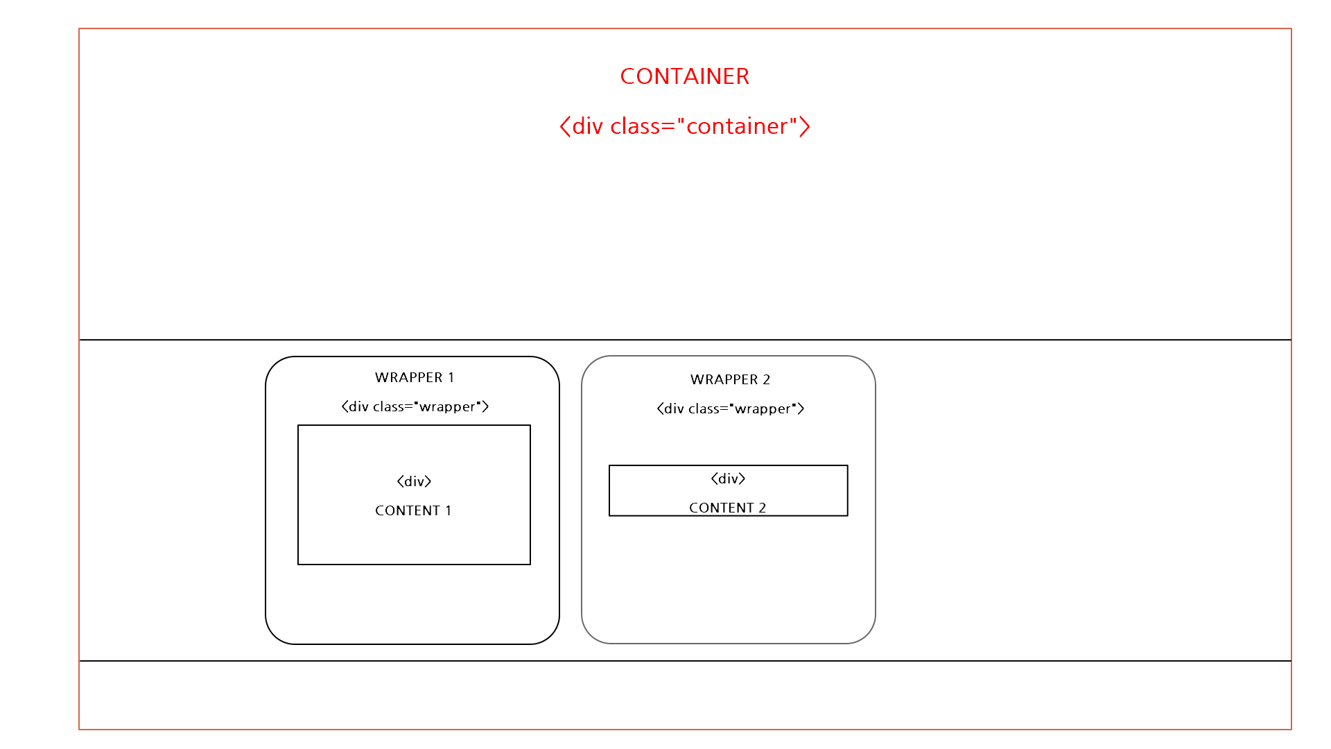 그리고 wrapper class 속성의 div 안에 content class 속성의 div (깊이: 2 depth)가 각각 존재한다.