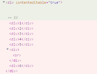 테스트로 작성한 후, HTML 구조를 보니 contenteditable="true" 로 선언된 요소에서 텍스트를 작성하면 div가 신규 생성이 되고, 개행은 br태그로 처리되는 것을 알 수 있었다.