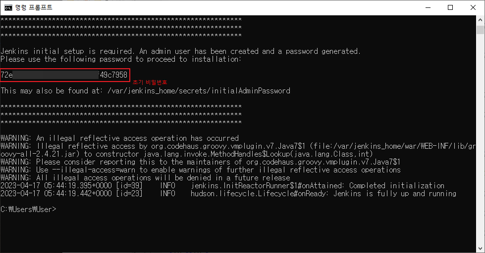 아래와 같이 초기 비밀번호가 출력된다. 이것을 복사한다.