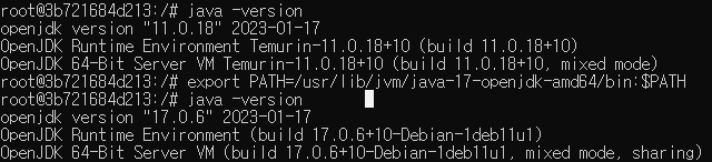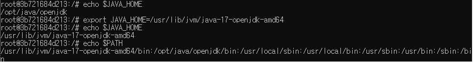 (필요 시, jdk 설치. 기본은 openjdk 11버전) apt-get install -y openjdk-17-jdk