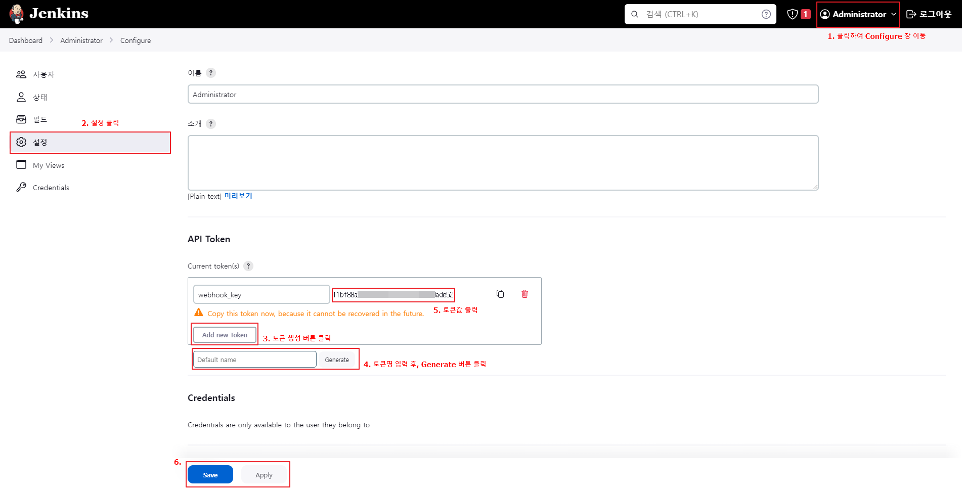 2. Jenkins 토큰 생성