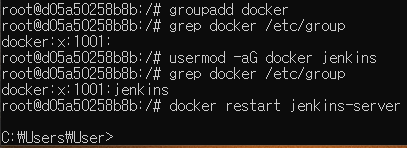 jenkins가 파이프라인을 실행할 수 있도록 docker 그룹과 jenkins 유저를 추가해준다.